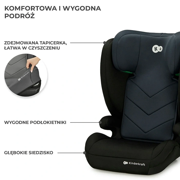 Kinderkraft i-Spark i-Size jest fotelikiem stworzonym dla dzieci o wzroście od 100 do 150 cm. Przez cały okres możemy korzystać z niego jak ze standardowego fotelika z wysokim oparciem, ale w razie potrzeby oparcie można odpiąć, przekształcając tym samym fotelik w booster.