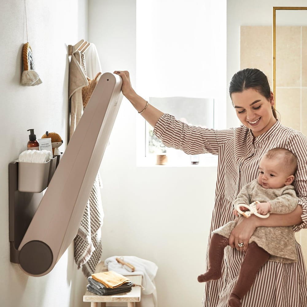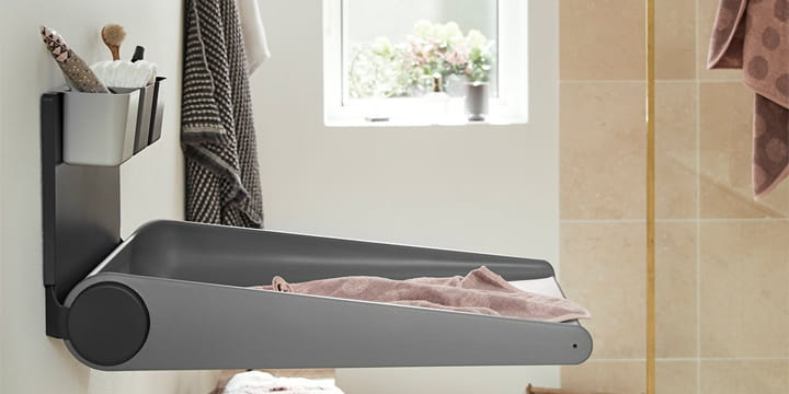 Przewijak Leander Wally™ to nowoczesne rozwiązanie, które oszczędza przestrzeń, montowane bezpośrednio na ścianie. Dzięki swojej konstrukcji i możliwości składania, zajmuje minimalną ilość miejsca, co jest szczególnie ważne w mniejszych pomieszczeniach.