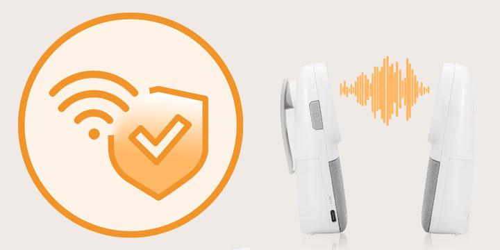Niania korzysta z technologii FHSS, która automatycznie wybiera i rezerwuje jeden z dostępnych kanałów, błyskawicznie łącząc nadajnik z odbiornikiem. Dzięki temu sygnał jest w pełni zaszyfrowany i chroniony przed dostępem osób trzecich, co gwarantuje bezpieczeństwo przesyłanych dźwięków.