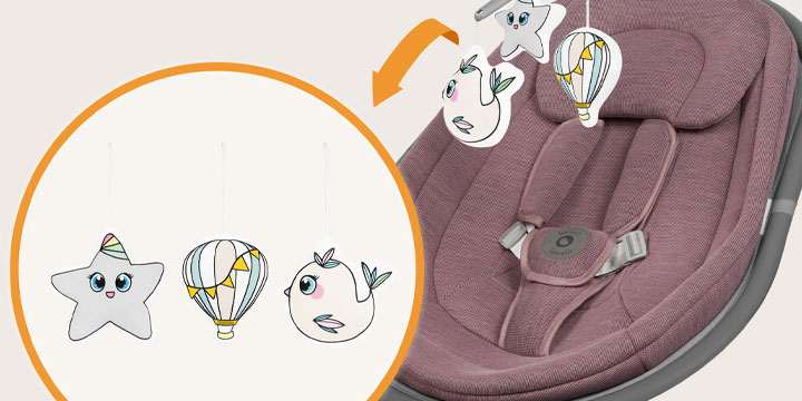 Blossom to nie tylko bujaczek – to także mini plac zabaw! Odpinany pałąk z trzema kontrastowymi zabawkami przyciąga uwagę maluszka i zachęca go do wyciągania rączek, co wspiera rozwój koordynacji i motoryki. Gdy nadejdzie czas na odpoczynek, pałąk łatwo zdejmiesz, by stworzyć dziecku spokojną przestrzeń do relaksu.