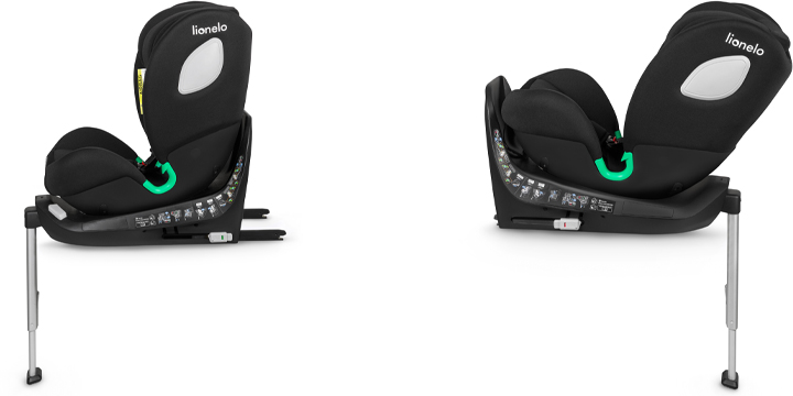 Lionelo Braam i-Size może być montowany tyłem do kierunku jazdy do osiągnięcia przez dziecko 105 cm wzrostu. Dzięki ramie antyrotacyjnej dziecko ma zdecydowanie więcej miejsca na nóżki podczas podróżowania tyłem. Fotelik instaluje się za pomocą pasa samochodowego / Isofixu + nogi stabilizującej / Isofixu + pasa samochodowego.