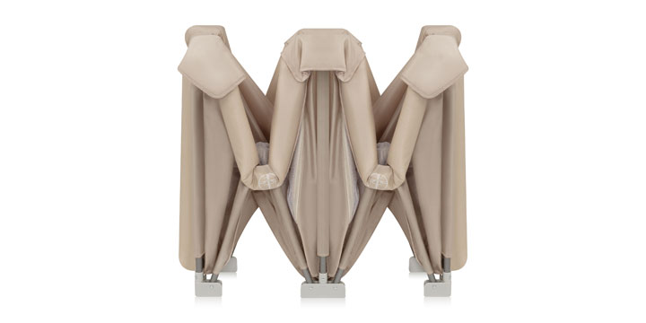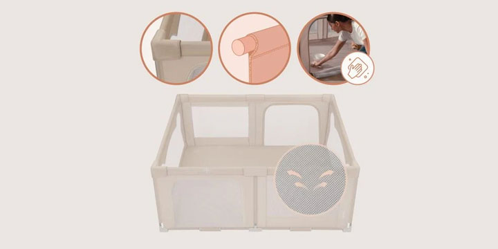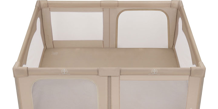 Kojec wyposażono w przewiewne ścianki z siateczki, które dbają o stały dopływ świeżego powietrza. Przez przezroczysty materiał zawsze widzisz swojego malucha, a on czuje się pewnie, mając Cię w zasięgu wzroku. To rozwiązanie, które daje spokój zarówno dziecku, jak i rodzicom.