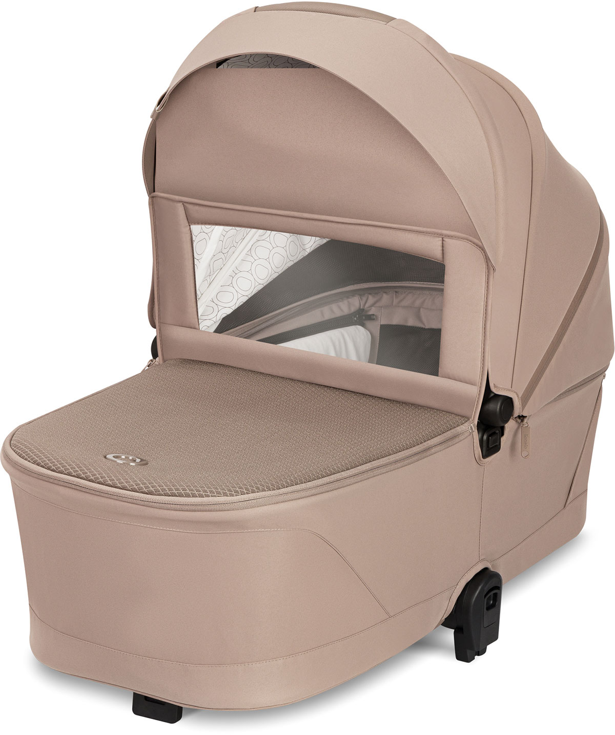 Gondola posiada oficjalną certyfikację do przenoszenia dziecka, co pozwala na bezpieczne transportowanie śpiącego malucha prosto z wózka do domu. W komplecie z wózkiem znajdują się niezbędne dodatki: folia przeciwdeszczowa, moskitiera, pokrowiec na nóżki, adaptery do fotelika oraz dedykowany pas do wygodnego przenoszenia złożonego stelaża na ramieniu.