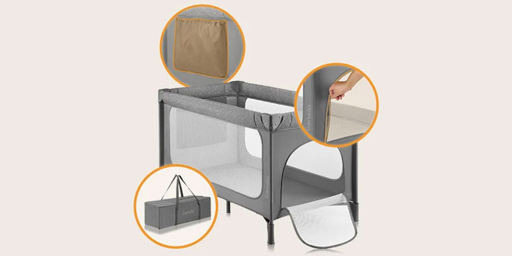 Rodzice pokochają Lionelo Jasmin za system składania Easy Fold, niewielkie rozmiary po złożeniu, poręczną kieszeń służącą za organizer oraz wygodę przenoszenia dzięki dołączonej do zestawu torbie podróżnej.