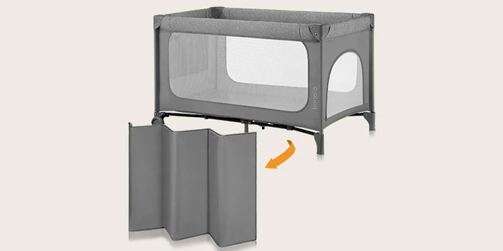 Lionelo Jasmin Easy Fold posiada ergonomiczny materac o gęstości T25, który zadba o dobre podparcie ciała maluszka.