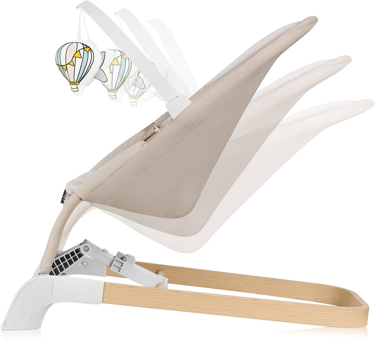 Lilac nie posiada mechanicznego bujania - to Twoje dziecko napędza ten silnik w zgodzie ze swoim naturalnym rytmem, wprawiając go w ruch podczas przebierania nóżkami.