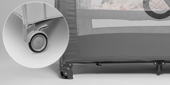 Dwa praktyczne koła ułatwiają przestawianie, pozwalając na korzystanie z łóżeczka w różnych miejscach. Z łatwością przesuniesz łóżeczko jeśli chcesz mieć dziecko w zasięgu wzroku.