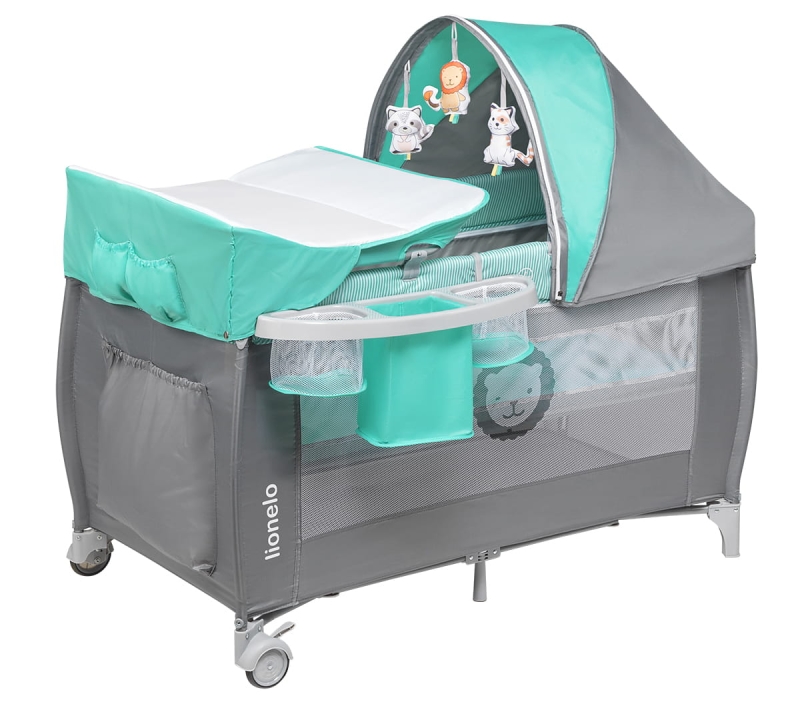 Lionelo Sven Plus - Wielofunkcyjne łóżeczko turystyczne | Turquoise Grey