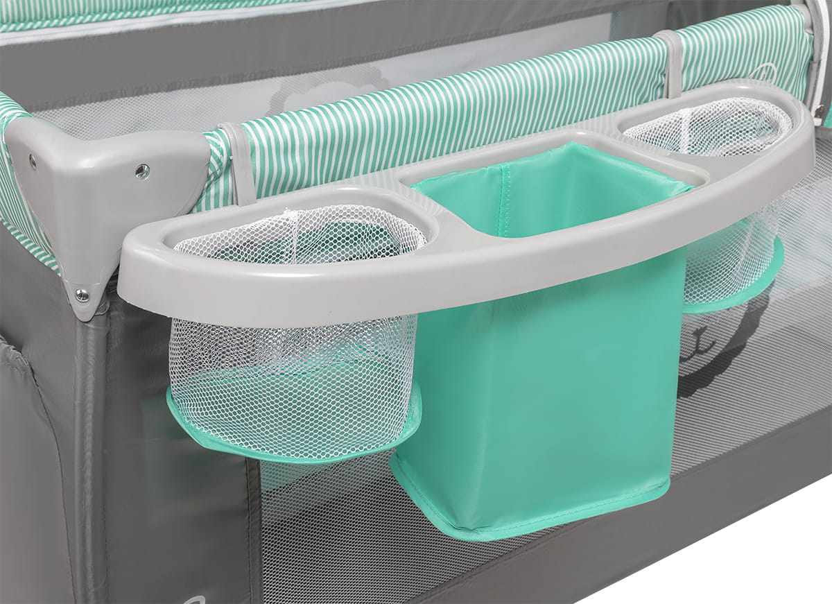 Dwa poziomy wysokości materacyka umożliwiają przystosowanie łóżeczka już od pierwszych dni życia maluszka aż do 15 kg. Dodatkowo możliwość umieszczenia wkładki do przewijania pozwala na wygodne przewinięcie dziecka w każdych warunkach. Dzięki organizerowi, wszystkie potrzebne akcesoria będą zawsze pod ręką.