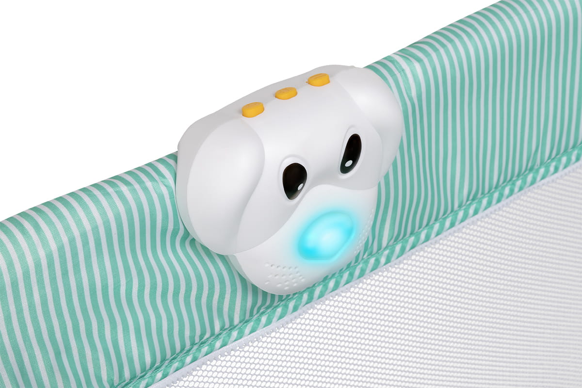 Łóżeczko wyposażone jest w daszek chroniący przed słońcem oraz rozkładaną moskitierę dzięki czemu relaks na świeżym powietrzu będzie jeszcze przyjemniejszy. Czas zabawy umilą z kolei kolorowe i przyciągające wzrok zabawki oraz interaktywny grający piesek, który dodatkowo wprawi materacyk w lekkie wibracje i zainteresuje dziecko efektami świetlnymi.