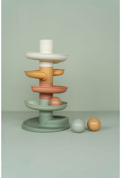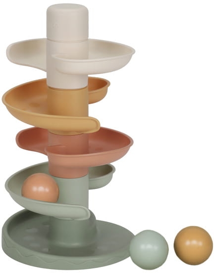 Kulodrom od Little Dutch to spiralna wieża zapewniająca niekończącą się zabawę. Ten kolorowy zestaw składa się z pięciu części w delikatnych kolorach, które maluch może z łatwością układać jedna na drugiej. Kulki, puszczone z najwyższego poziomu, powoli będą toczyć się jedna po drugiej w dół. Kulodrom wyposażony jest w 3 lekkie i łatwe do uchwycenia kulki w różnych kolorach, które, podczas poruszania się, wydają dźwięk. Rozmiar jest odpowiedni dla małych rączek i pomaga rozwijać koordynację wzrokowo-ruchową.