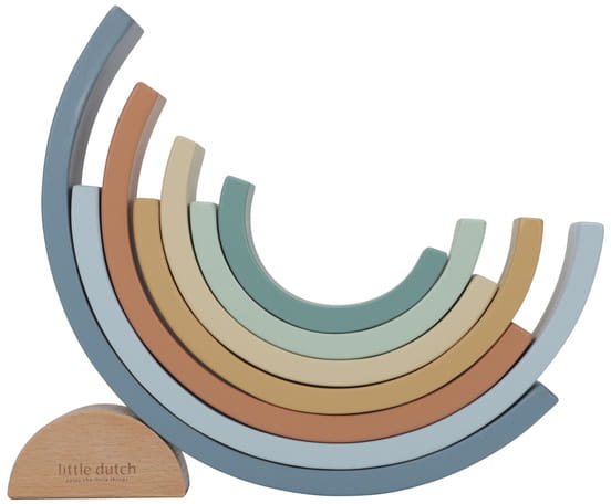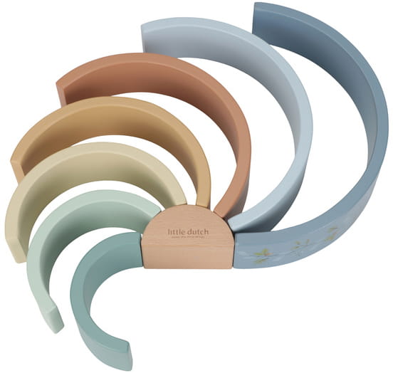 Drewniana tęcza Forest Friends od Little Dutch. Składa się z 8 łuków w różnych rozmiarach pasujących do siebie. Ta tęczowa układanka w odcieniach niebieskiego, żółtego i zielonego rozwija małą motorykę i wyobraźnię dzieci. Budowanie figur, tuneli kolejowych lub mostów dla małych samochodów - istnieją nieskończone możliwości kreatywne i mnóstwo niekończącej się zabawy! Tęcza będzie również uroczym elementem wystroju pokoju dziecięcego. Tęcza to świetny pomysł na prezent i doskonałe uzupełnienie dla pozostałych zabawek z kolekcji Forest Friends od Little Dutch.