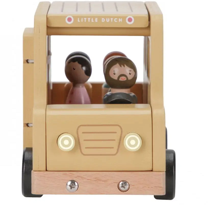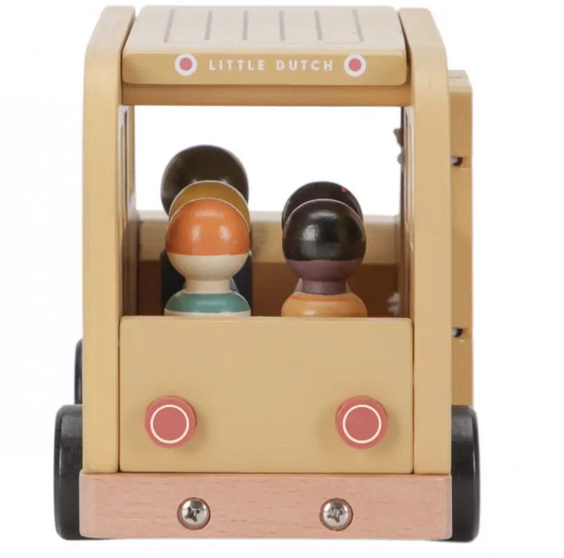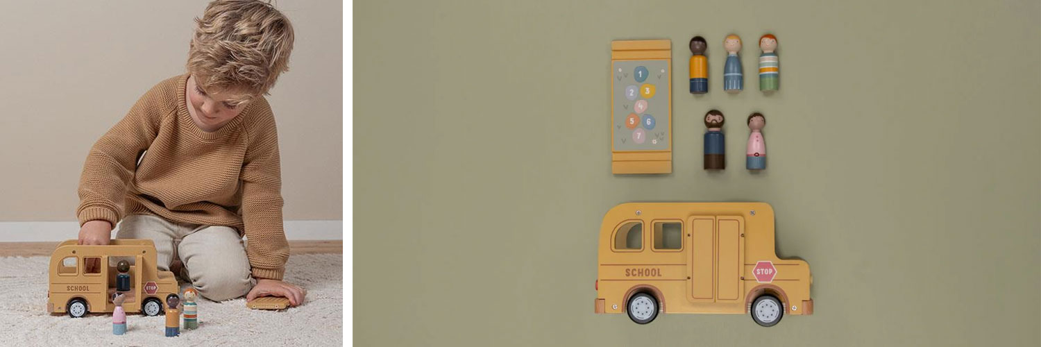 Szkolny autobus FSC od Little Dutch – gotowi na wesołą podróż? Upewnij się, że wszyscy pasażerowie siedzą wygodnie, bo gdy kierowca przekręci kluczyk, ruszamy w drogę pełną śmiechu i przygód! Gdzie dziś zawiezie Was wyobraźnia?