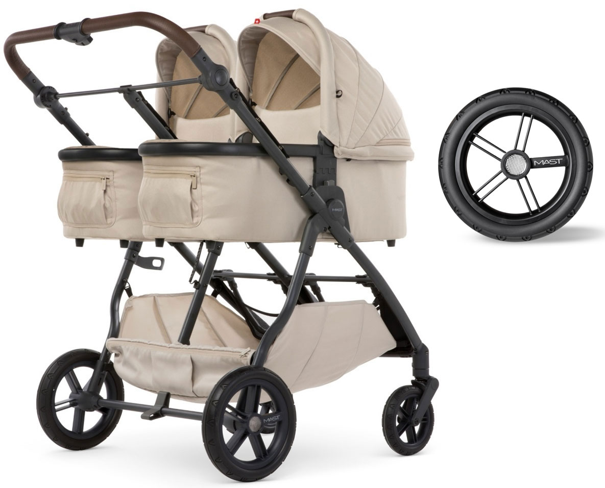 Mast Swiss Design M.Twin X - wielofunkcyjny wózek bliźniaczy, wózek 2w1 dla bliźniąt | Lion, koła HP