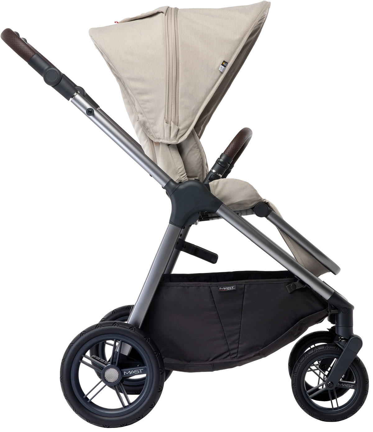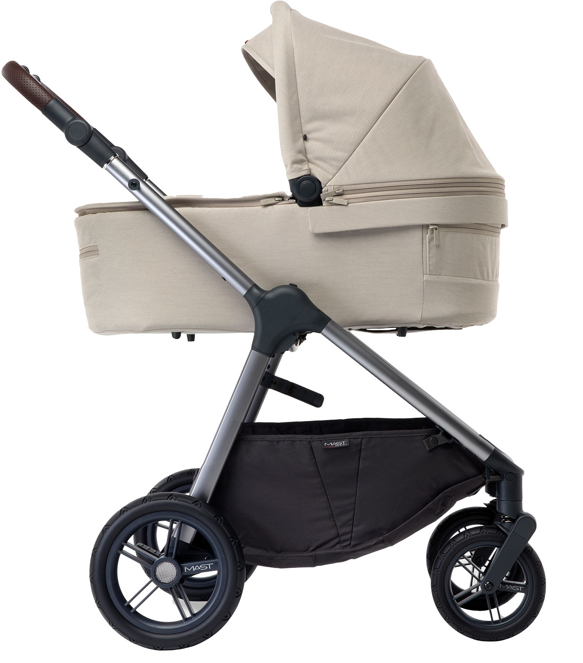 Mast Swiss Design M5X to wózek 2w1 dla dzieci od narodzin do 22 kg. Dzięki ergonomicznej gondoli oraz siedzisku spacerowemu, Twoje dziecko może swobodnie rosnąć i odkrywać świat w bezpiecznej przestrzeni dostosowanej do jego etapu rozwoju.