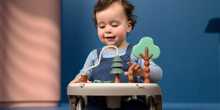 Jay Plus łączy nowoczesny, stylowy wygląd z funkcjonalnością, doskonale wpisując się w estetykę współczesnych wnętrz. Wykonany z wysokiej jakości materiałów, nie tylko świetnie się prezentuje, ale też zapewnia trwałość i komfort użytkowania. Dołączone zabawki przyciągają uwagę dziecka, wspierając rozwój przez zabawę, a jednocześnie doskonale komponują się z eleganckim designem. Kompaktowa forma oszczędza miejsce, nie rezygnując z przestronności siedziska i funkcjonalnej tacki dla rosnącego malucha.