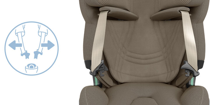 Uprząż z systemem Easy-in utrzymuje pasy w pozycji otwartej, co znacząco ułatwia wkładanie i wyjmowanie dziecka. Gdy maluch podrośnie, ochraniacze można łatwo schować – bez konieczności ich zdejmowania.