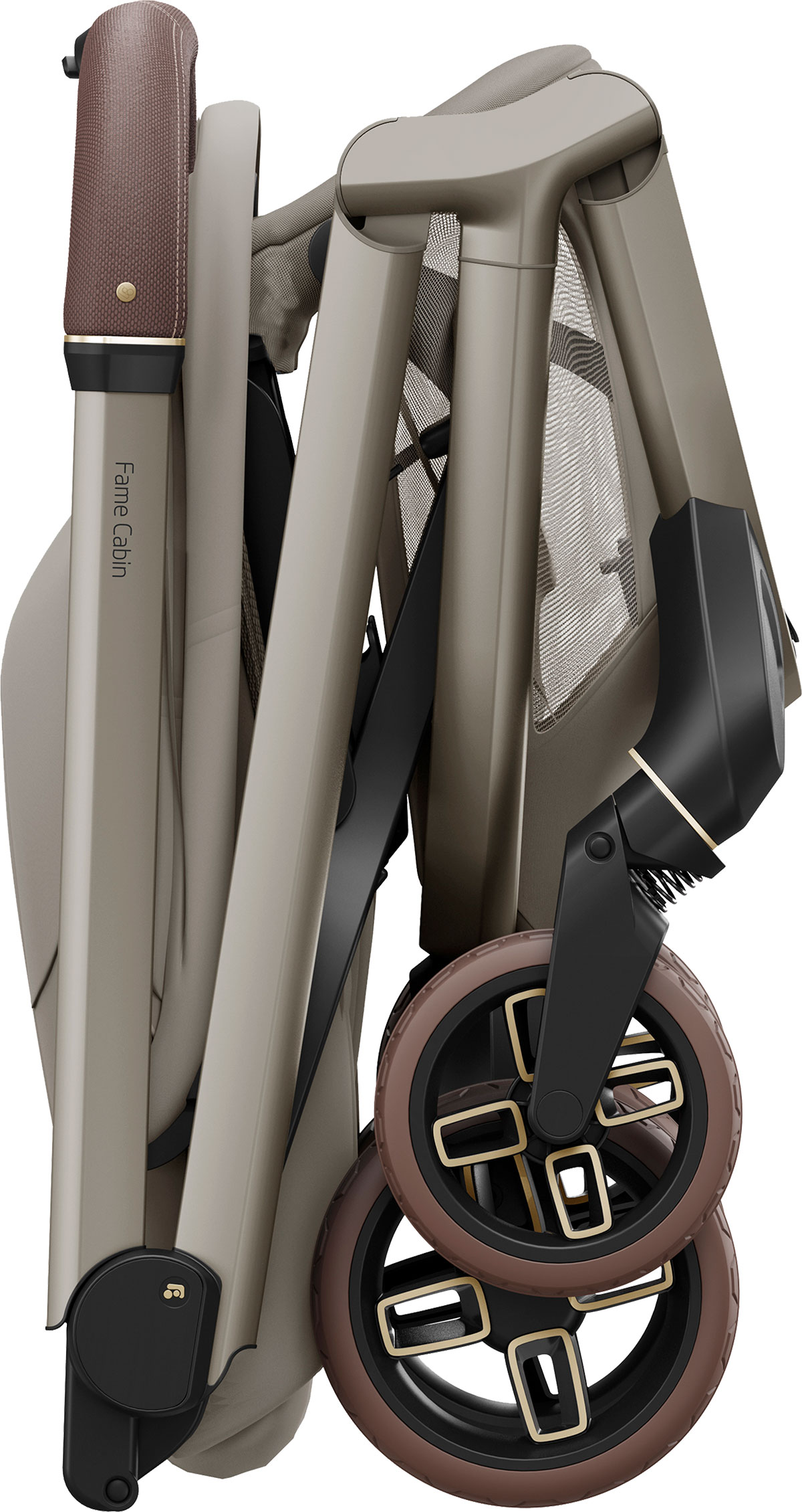 Maxi Cosi Fame Cabin został wyposażony w bezobsługowe, trwałe koła, z których przednie są obrotowe, co zapewnia świetną zwrotność nawet w ciasnych przestrzeniach. Innowacyjny mechanizm pozwala złożyć wózek jedną ręką, co znacząco ułatwia codzienne użytkowanie oraz transport, szczególnie w podróży.