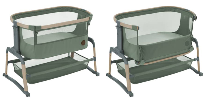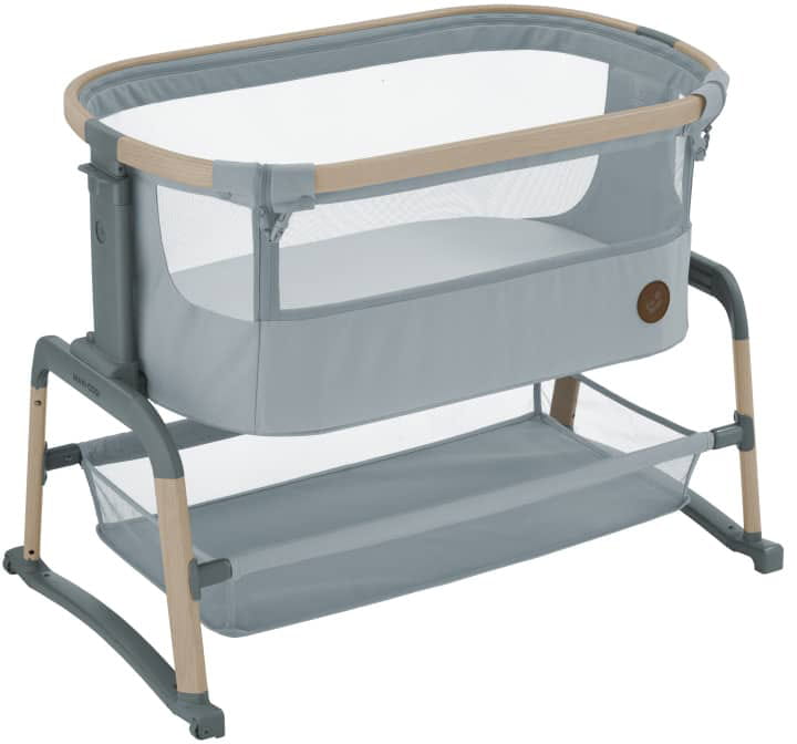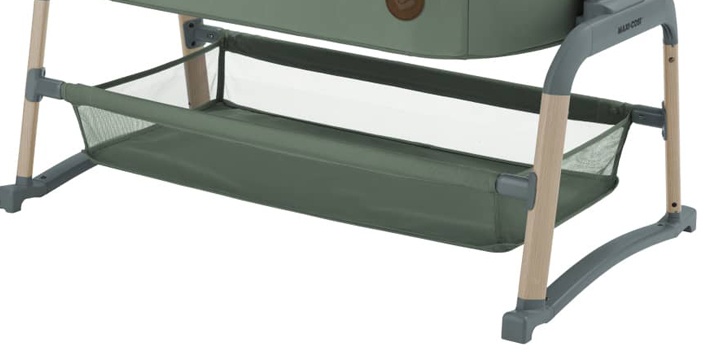 Maxi Cosi Iora Air posiada płozy pozwalające na przemianę łóżeczka w kołyskę. Obszerny kosz na akcesoria daje rodzicowi dodatkowe miejsce na zapasową pościel, pieluszki, pluszaki czy koc.