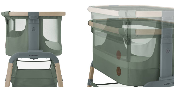 Łóżeczko dostawne Maxi Cosi Iora Air daje możliwość łatwego dopasowania do łóżka rodziców. Dzięki 5-stopniowej zmianie wysokości łóżeczka, różnice pomiędzy poszczególnymi modelami łóżek nie będą stanowić problemu. Kolejnym atutem jest fakt, że w łóżeczku można zmienić kąt nachylenia materaca - jest to niezwykle pomocne w czasie infekcji górnych dróg oddechowych.