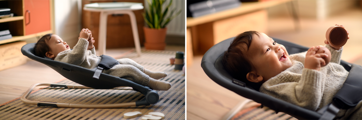 Leżaczko-bujaczek Maxi Cosi Loa jest przeznaczony dla maluszków od narodzin, dzięki ergonomicznej konstrukcji siedziska. Jego forma jest zbliżona do hamaka, w którym maluszek ma równomierne podparcie dla całego kręgosłupa, szyi oraz głowy. Przyjemne w dotyku tkaniny dodatkowo pomogą w relaksie.