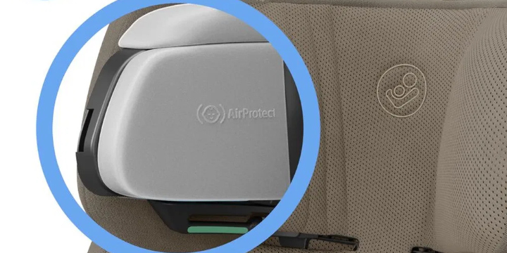 Specjalne poduszki bezpieczeństwa w zagłówku redukują ryzyko urazów głowy, zapewniając jednocześnie miękkie i wygodne oparcie podczas drzemek.