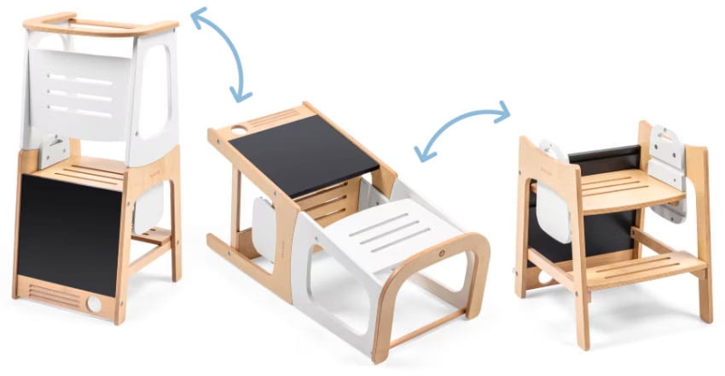 W trybie kitchen helpera oraz stołka produkt umożliwia regulację wysokości, co pozwala mu rosnąć razem z dzieckiem.