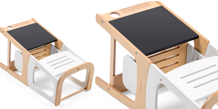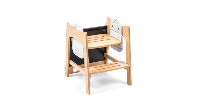 Wystarczy odwrócić Maxi Cosi Toucan, aby z kitchen helpera przekształcić produkt w funkcjonalny stoliczek z krzesełkiem. Jego powierzchnię pokrywa tablica, na której maluch może tworzyć niepowtarzalne dzieła sztuki.
