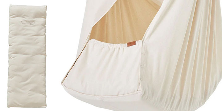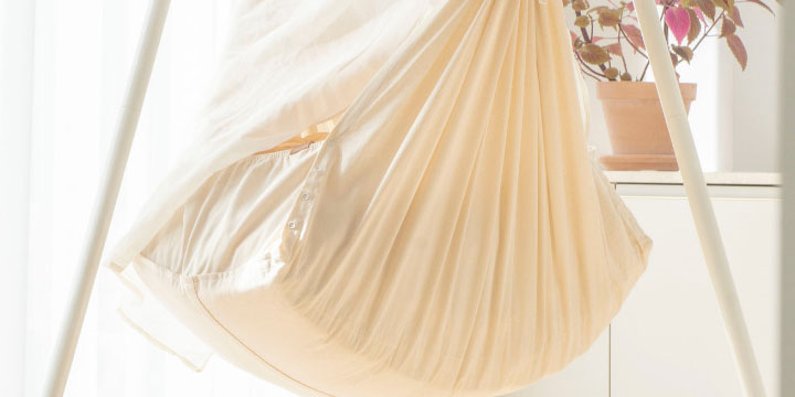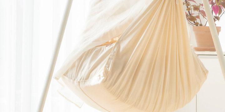 Hamak został wykonany w 100% z certyfikowanej bawełny organicznej - jest bezpieczny dla wrażliwej skóry dziecka.
