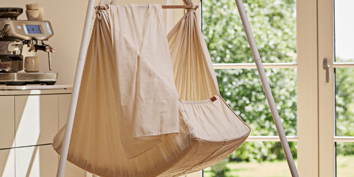 Hamak niemowlęcy Premium to wyjątkowe miejsce odpoczynku dla maluszka, które naśladuje czułe objęcia rodzica i jego delikatne kołysanie. Dzięki sprężynowej konstrukcji dopasowuje się do ciała dziecka i wprowadza je w naturalny, rytmiczny ruch, który koi zmysły i ułatwia zasypianie. To doskonałe rozwiązanie zwłaszcza dla niemowląt, które mają trudności z dłuższym snem lub potrzebują więcej bliskości. Hamak został wykonany z miękkiej, certyfikowanej organicznej bawełny, a dołączony wełniany materacyk zapewnia optymalny komfort i termoregulację. Jedyny na rynku model z baldachimem, który ogranicza bodźce i działa jak moskitiera, tworząc idealne warunki do drzemki w domu i na zewnątrz. Hamak można zamontować niemal wszędzie - a po połączeniu z silnikiem kołyszącym staje się jeszcze bardziej funkcjonalny, dając rodzicom chwilę wytchnienia. Całość zapakowana jest w bawełnianą torbę, co ułatwia transport i przechowywanie.