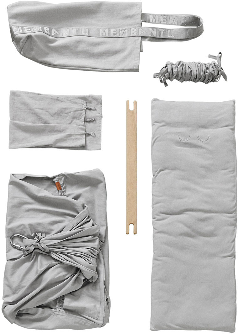 W pakiecie m.in. hamak, materac, prześcieradło, baldachim, sprężyna, poprzeczka, karabińczyk i torba.