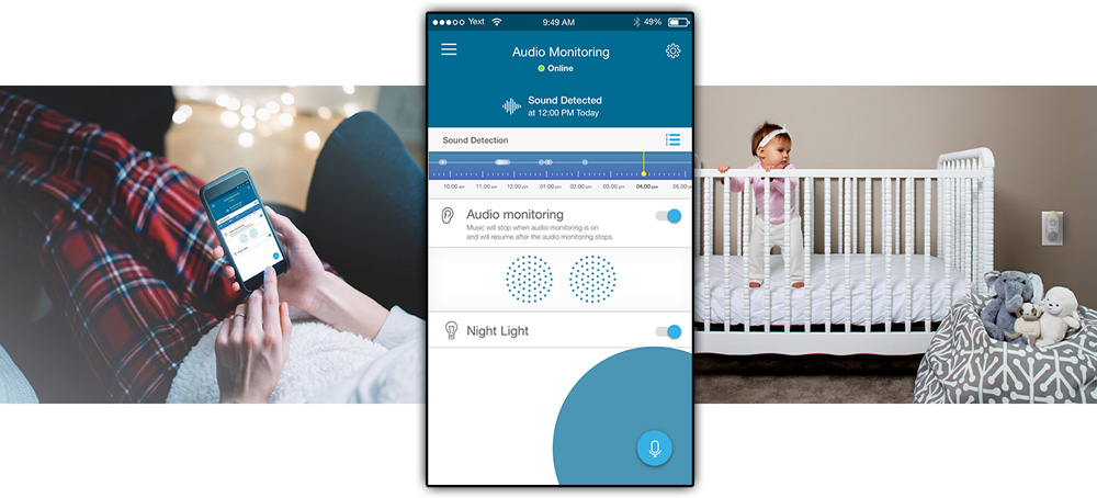 Niana MBP 162 Connect w połączeniu z aplikacją Hubble pozwala na zdalne włączenie i wyłączenie lampki, kiedy nasza pociecha spokojnie zaśnie.