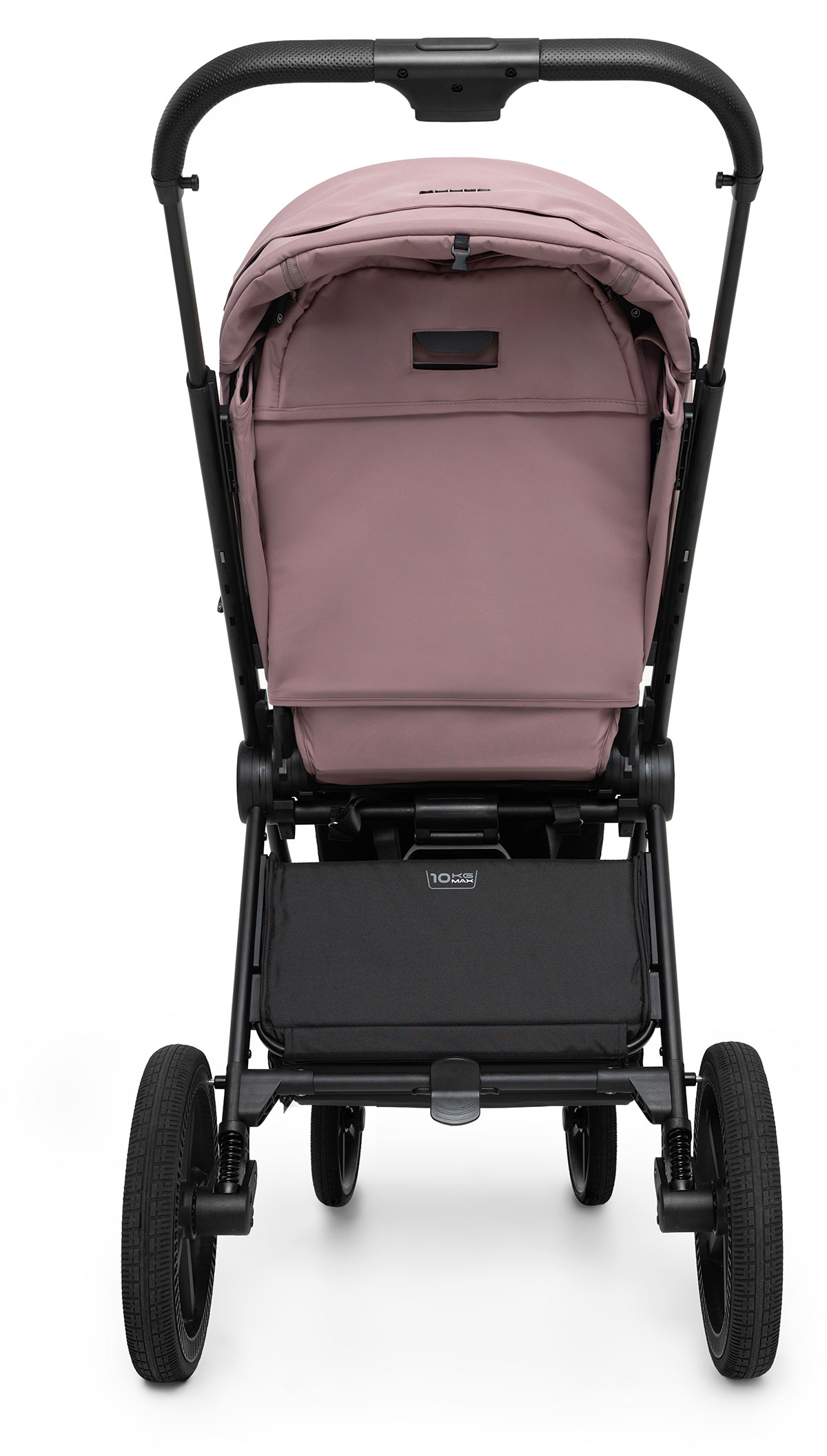 Hydrofobowa tkanina z filtrem UPF 50 chroni przed deszczem i słońcem, a przyjemna w dotyku struktura i elegancki wygląd utrzymują wózek w świetnej kondycji przez długi czas.