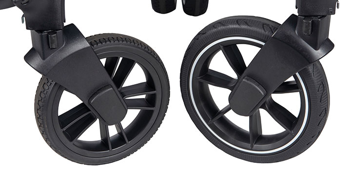 Muuvo Quick to wózek na świetnych kołach, poradzi sobie na spacerach nawet w trudnym terenie.