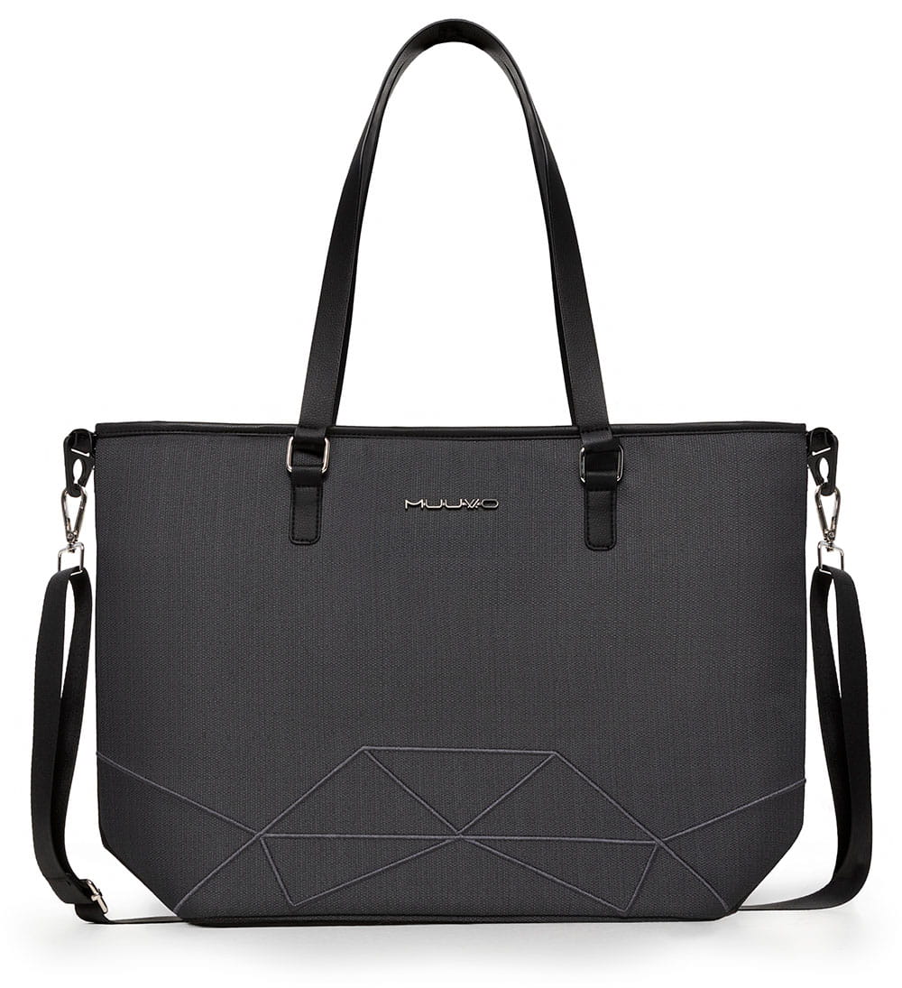 Elegancka torba dla rodzica w Muuvo Quick SE 2 jest wyposażona w dwa komplety pasków, które umożliwiają montaż na różne sposoby. Jeden komplet posiada system regulacji wysokości.