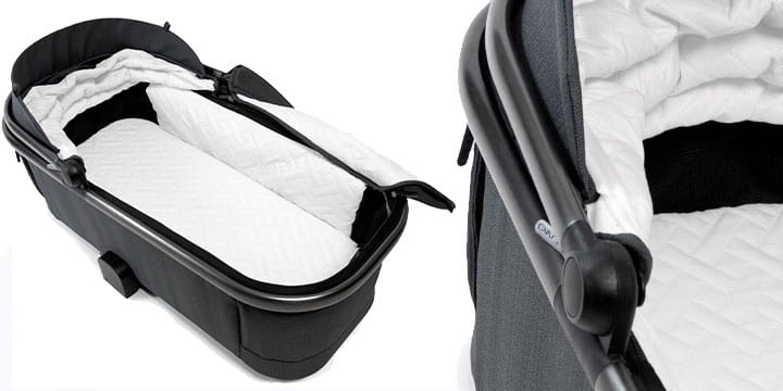 - Gondola montowana jest wyżej, na adapterach podwyższających dołączonych do zestawu. Rodzice mogą odczuć wyższy komfort, ponieważ nie muszą się mocno schylać by zaopiekować się dzieckiem wewnątrz gondoli.
