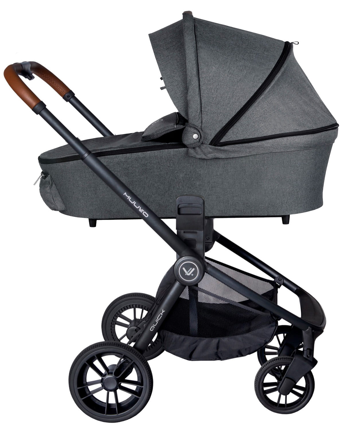 Travel system sprawi, że wózek Muuvo Quick dla aktywnych rodziców ceniących wygodę i szybkość składania będzie gwarancja dobrego wyboru.