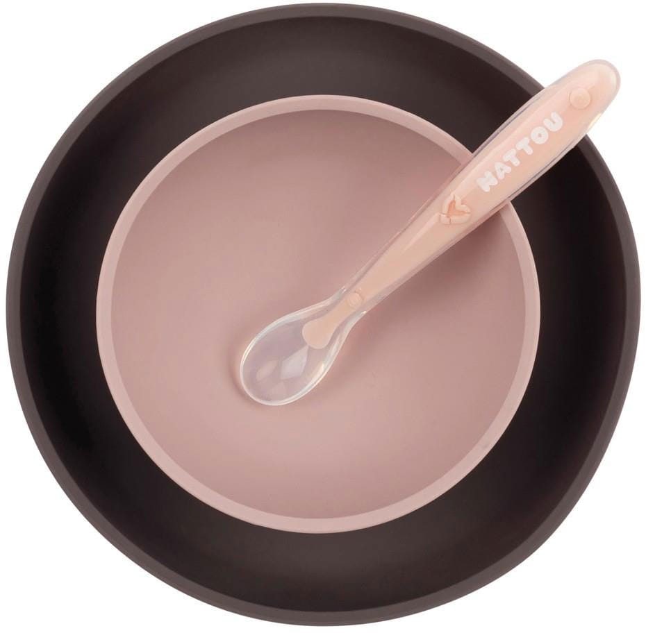 Nattou silikonowe naczynia dla dzieci, zestaw 3w1 z łyżeczką