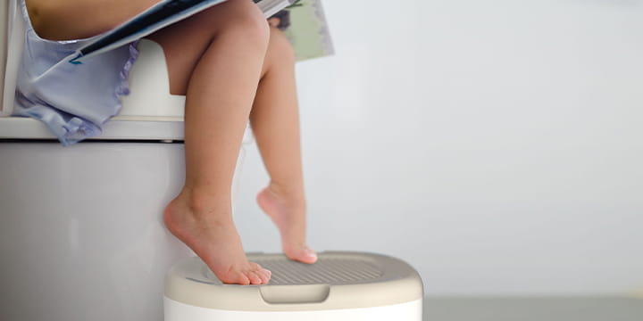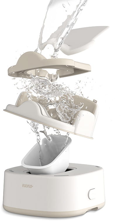 Każdy element Neno Ampio został starannie zaprojektowany, aby ułatwić kilkulatkom naukę samodzielnego korzystania z toalety. Wygodny podnóżek zapewnia stabilne oparcie dla stóp, eliminując problem wiszących nóżek i wspierając prawidłową postawę ciała.