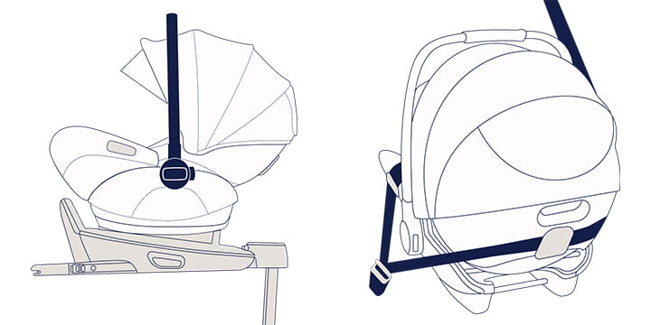 Fotelik Nuna Arra Flex można montować wyłącznie tyłem do kierunku jazdy, korzystając z bazy ISOFIX lub 3-punktowego pasa samochodowego. Montaż z bazą next jest szybki, prosty i bezpieczny dzięki wykorzystaniu punktów mocowania ISOFIX w samochodzie.