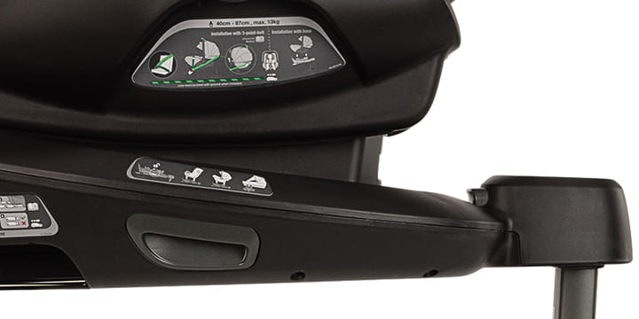 Strefa zgniotu w nóżce stabilizującej BASE następnie pochłania siłę uderzenia i minimalizuje siłę działającą na dziecko. Możliwość obrotu ułatwia zapinanie dziecka i montaż fotelika samochodowego.