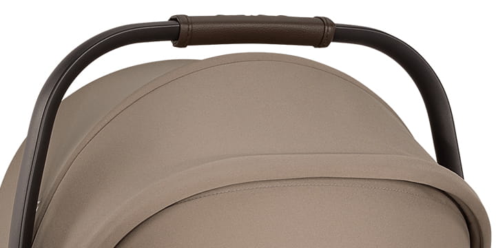 Pokryty elegancką sztuczną skórą, gwarantuje pewniejszy i bezpieczniejszy chwyt.Rączka fotelika służy tez poprawie bezpieczeństwa, skutecznie przenosi siły uderzenia na skorupę fotelika, zapewniając dodatkową ochronę wrażliwej okolicy głowy dziecka.