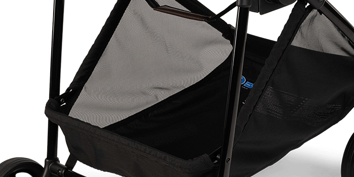 Duży kosz zakupowy w siedzisku spacerowym jest niezwykle łatwy w dostępie, dzięki czemu w dowolnej chwili, bez konieczności postoju, możemy włożyć coś do środka.