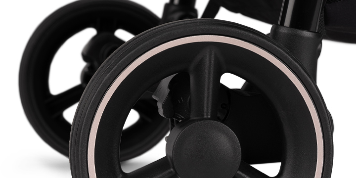 Kółka w wózku Nuna IXXA są stworzone z materiału EVA, co zapewnia lekkość, płynność i bezkompromisową wygodę podczas codziennych spacerów. Ta spacerówka posiada pełne zawieszenie na wszystkie cztery koła.