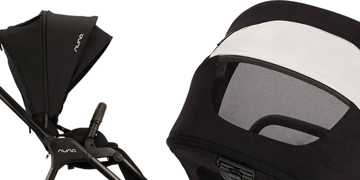Siedzisko z funkcją ręcznego rozkładania oferuje 3 pozycje, w tym niemal płaską dla noworodków. Regulowane podparcie łydek rośnie razem z dzieckiem, a specjalna wkładka z mieszanki wełny Merino i Tencel dba o odpowiednią temperaturę i komfort. Latem wystarczy zdjąć wkładkę, by odsłonić przewiewną, siatkową konstrukcję siedziska.
