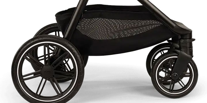 Duże koła do zadań specjalnych, nowoczesna amortyzacja siedziska i hamulec uruchamiany jednym ruchem sprawiają, że jazda jest płynna nawet na nierównych nawierzchniach. Przestronny kosz pod wózkiem bez problemu pomieści wszystkie dziecięce drobiazgi — i jeszcze zostanie miejsce na Twoje zakupy.