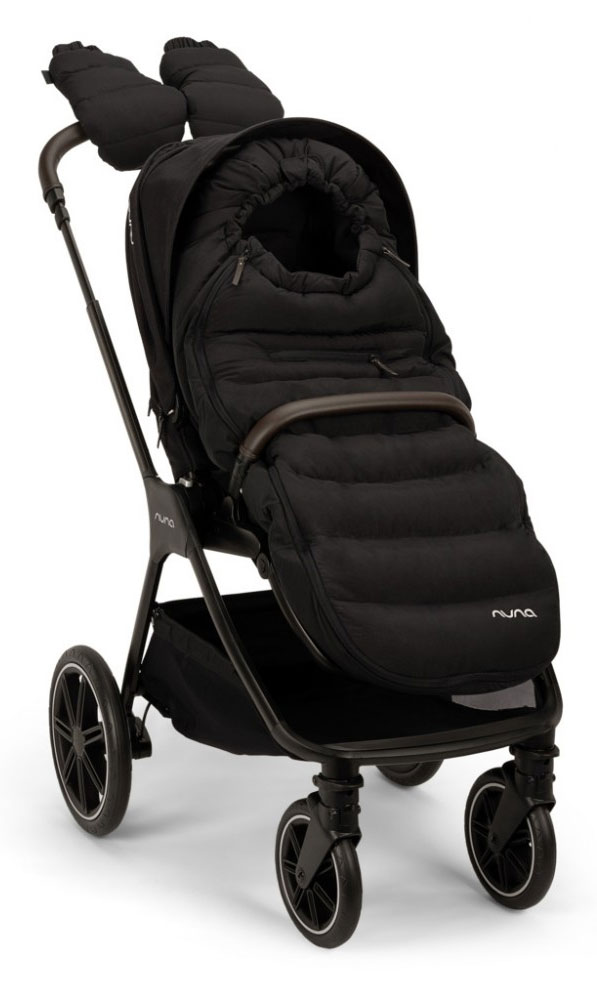 W skład zestawu Nuna Triv LX All Season wchodzą: wózek spacerowy TRIV lx, gondola TRIV lx, regulowane adaptery, folie przeciwdeszczowe do obu wersji wózka oraz zimowy komplet – śpiwór i rękawice.