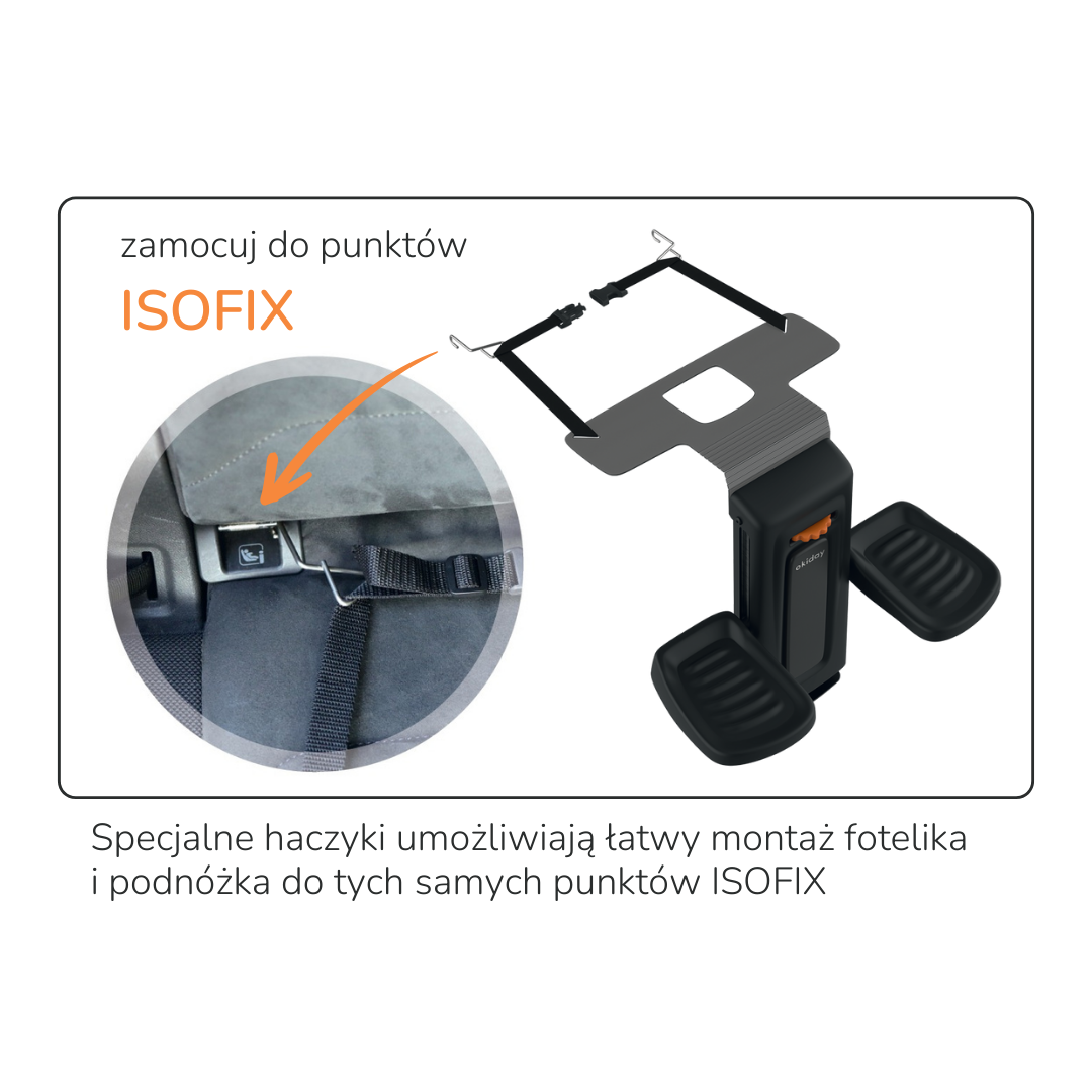 Jeśli jesteś posiadaczem samochodu bez Isofix możesz nadal zainstalować podnóżek w samochodzie - wymagane jest dokupienie dodatkowej płyty montażowej