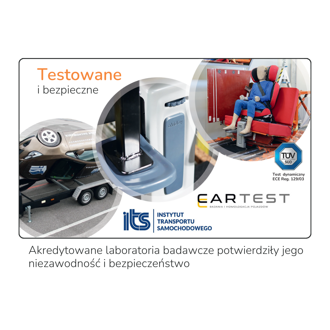 Podnóżek został poddany licznym testom w niezależnych, certyfikowanych laboratoriach w Polsce i w Europie. W wyniku tych testów podnóżek Okiday Stópołapki jest oficjalnie produktem bezpiecznym.