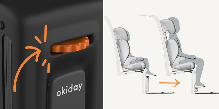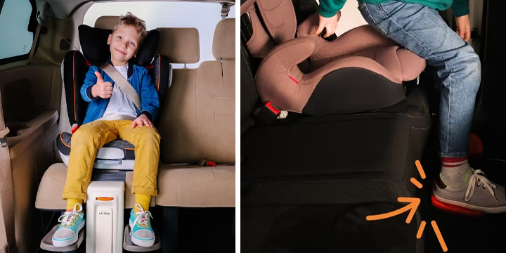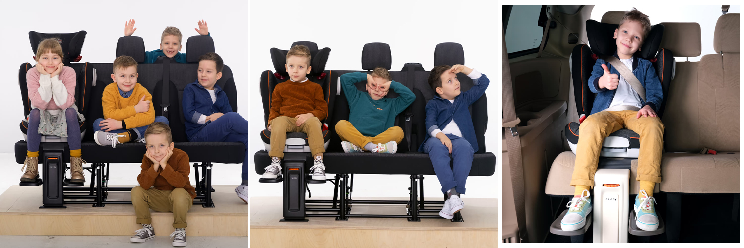 Podnóżek Okiday stworzono z myślą o dzieciach w wieku od 5 do 12 lat, posiada mechanizm umożliwiający regulację wysokości podestów na stopy. Łatwy montaż w samochodzie i kompatybilność z każdym samochodem z systemem Isofix świadczy o uniwersalności tego praktycznego akcesorium.